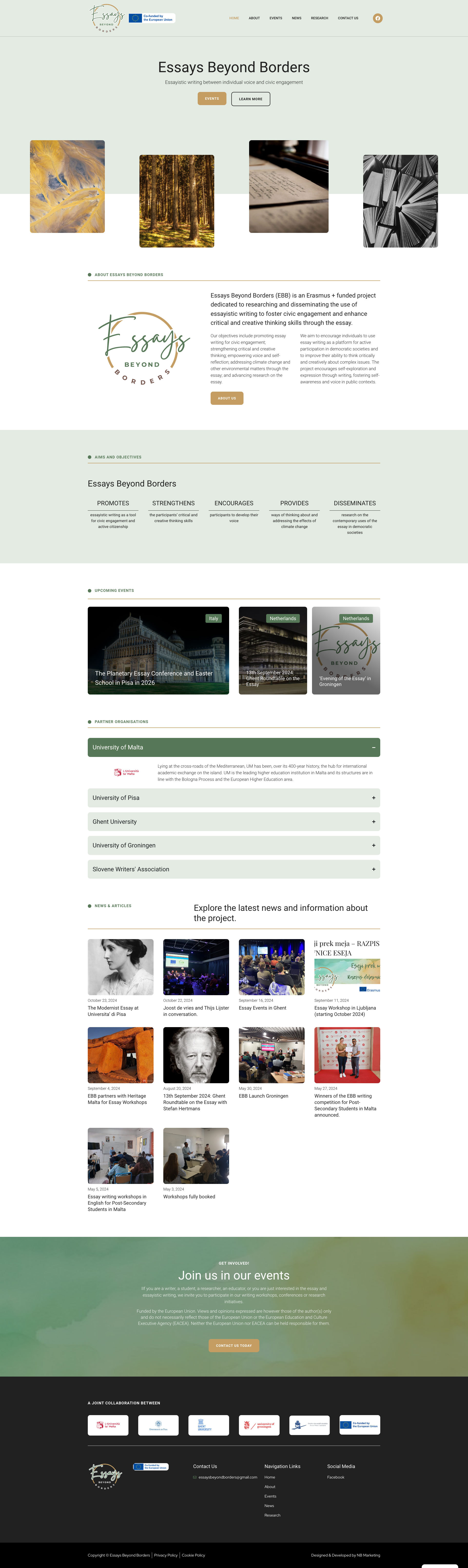 Essays Beyond Borders (EBB) is an Erasmus + funded project dedicated to researching and disseminating the use of essayistic writing to foster civic engagement and enhance critical and creative thinking skills through the essay.